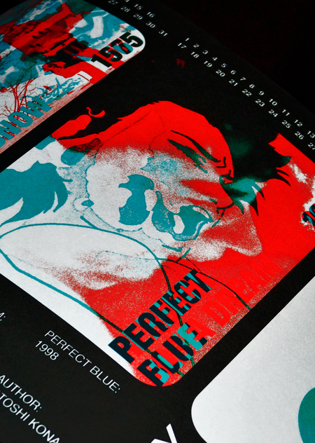Календарь в формате киноленты, работает с помощью 3D очков. Под одной линзой мы видим кадры из фильмов, под другой — произведения искусства, которые послужили вдохновением