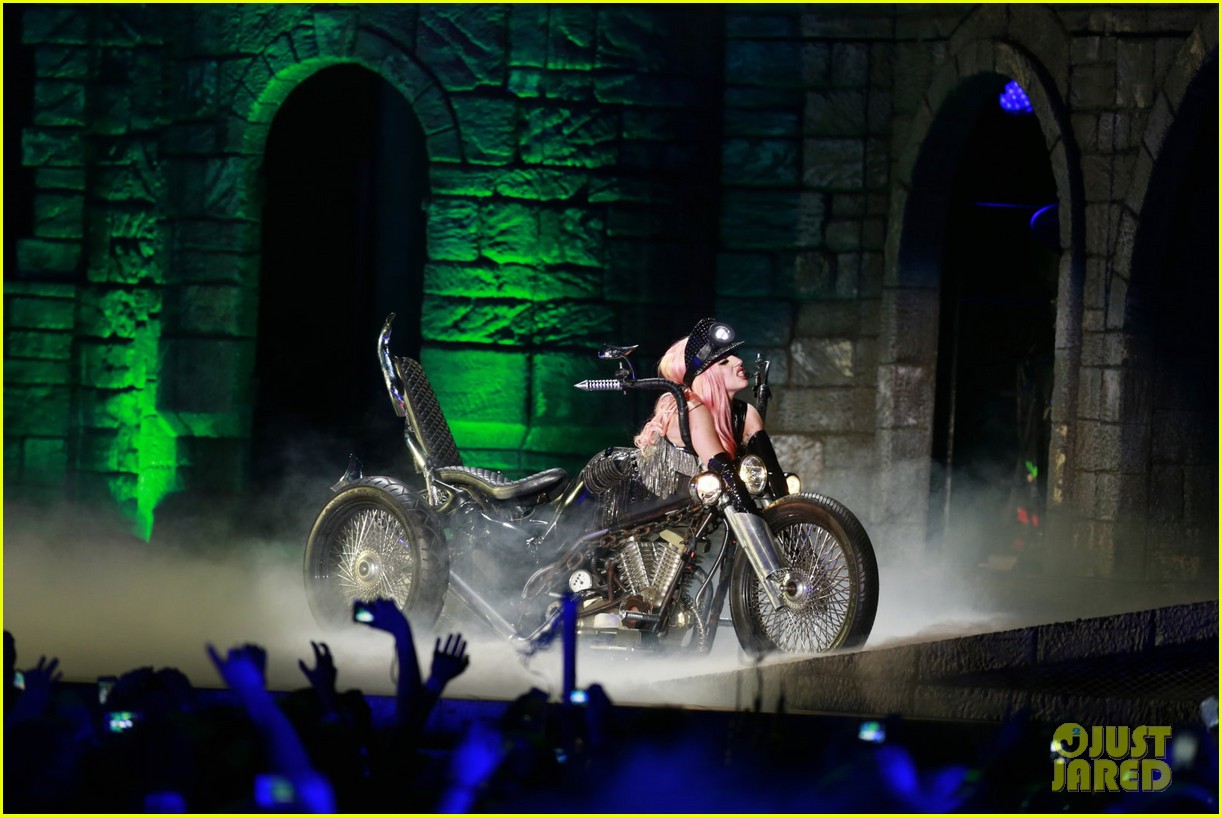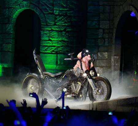 После релиза альбома «Born this way», во время концертов, певица выезжала на сцену в виде Женщины-мотоцикла. О своем образе Леди Гага рассуждала, как о машине, что несёт голоса её фанатов и собственное творчество вперед. Благодаря этому костюму она проводит параллель между собой и транспортом: Леди Гага показывает, что она и является этим транспортом.
