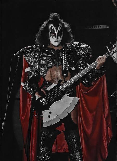 Джин Симмонс — вокалист и бассист. Его образ — демонический. Два черных крыла летучей мыши, огромные сапоги и грубое поведение, все создает такой пугающий, но в то же время притягательный образ исполнителя.