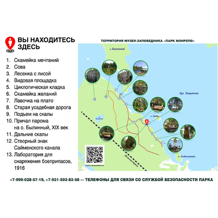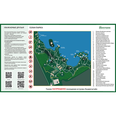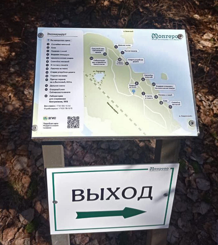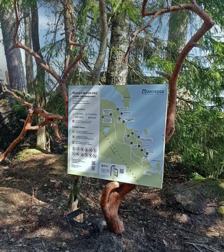 Ещё одним проектом, где я разрабатывала карту, стало сотрудничество с музеем-заповедником «Монрепо». В ходе коллаборации я предложила не просто разместить рекламу 2ГИС на существующих носителях, но и переработать их. Так появилась обновлённая карта экотропы, а также 9 табличек с местоположением, расположенных по всему маршруту.