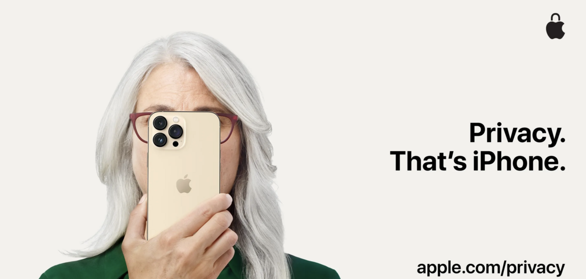 Фраза «Privacy. That’s iPhone» звучит как утверждение, где смысл распределён равномерно между двумя частями. Первая фиксирует ценность, вторая — точку происхождения этой ценности. В этой структуре нет давления: пауза, обозначенная точкой, создаёт ощущение внутренней уверенности. Это голос, который говорит спокойно и прямолинейно, без попытки усилить себя за счёт выразительных приёмов.