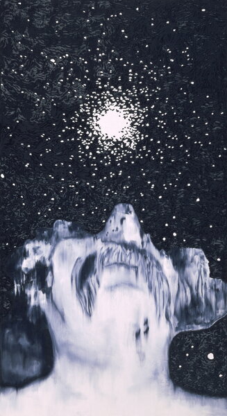 Если на картине «Сашок» Владимир Кустов исследует процесс постепенного слияния с вечностью и обретения бессмертия, то в написанной позднее работе «Увидивший Фудзияму» он обращается к моменту самого столкновения.