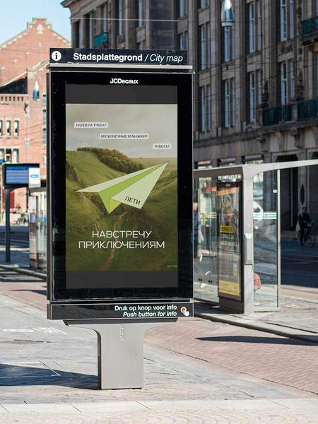 Данная серия плакатов призывает выйти из мира бумажек, сообщений, писем, документов в настоящий, живой мир.