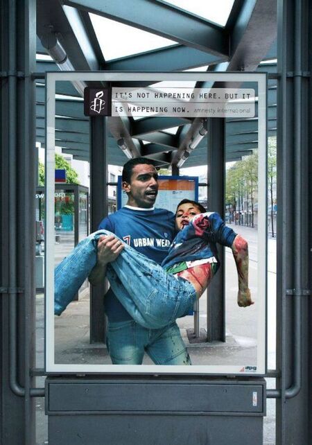 Эта работа посвящена анализу кампании Amnesty International «Not Here, But Now», в которой страдания людей из зон конфликтов намеренно «переносятся» в привычную городскую среду. Кампания разрушает эмоциональную дистанцию между зрителем и чужой трагедией, ломая привычный визуальный порядок.