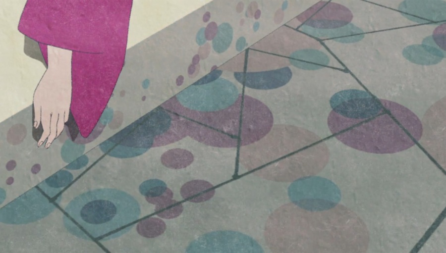 Мононоке, 2007 года, переходы между мирами осуществляются по-разному в зависимости от сюжетной арки. Разные эффекты позволяют лучше отразить и саму суть конфликта. Так, в 1 сюжетной арке, мы находимся в доме, стены, которого скрывают мрачное прошлое. Чтобы понять, что что-то не так с домом и что-то есть между, авторы накладывают эффект эхо, где кадры перетекают не плавно, а показывают двойственность пространства: мы видим сразу несколько кадров, которые не успели закончиться и застыли, так словно что-то из прошлого все ещё находит свое отражение в настоящем.