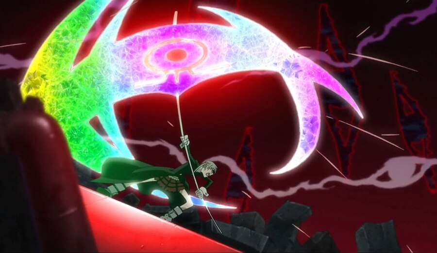 Также смена материалов рисовки меняет ощущение от сцены, делает её стрессовой, а магию — усиливает. В данном случае мы имеем представление об пространстве и стиле в просматриваемом аниме. Мы запоминаем стиль рисовки, форму, лайн, и в один момент магия становится настолько сильной, что она ломает представлением об самом анимационном мире: лайн перестает быть ровным, становится жестким и шершавым, цвета часто пропадают и оставляют голую суть.