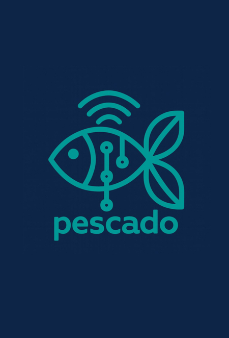 Промт: A logo mark for an app called «Pescado». The symbol should combine a simple fish silhouette with elements of digital technology (like a circuit line, a wifi signal, or a leaf). Flat design, geometric, symmetrical, suitable for app icon. Single color aqua blue on white background. No complex gradients, no photorealistic details