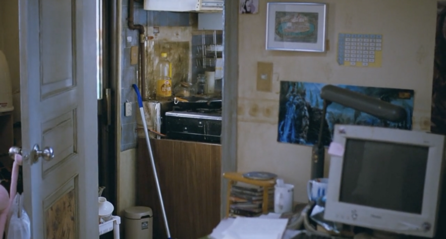 Пустые лестничные клетки, узкие проходы, тёмные углы квартир — это архитектура невозможной любви. Пространство буквально ограничивает движение героев, превращая каждый шаг в ритуал. В фильме почти нет крупных открытых пространств: пустота здесь становится зажатой, интимной, наполненной давлением.