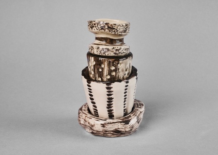 В этой серии я использовала много способов лепки, в том числе я попробовала использовать поворотный стол как гончарный круг. Также я пользовалась различными инструментами: гончарные стеки, петли и даже трубочка для коктейля. В этой серии я решила применить только черный ангоб, но и здесь я постаралась применить техники, которые никогда не использовала.