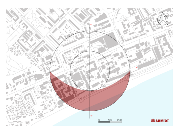 2. Здание Малой мельницы Шмидта имеет хорошее расположение в городе. Находится в историческом центре города, имеет хорошую транспортную доступность, большой транзитный трафик в районе, выход к набережной и воде. Также мельница оказывается в шаровой доступности большого количества домохозяйств, а также в районе начинается совершенствование новой застройки. с возможностью полного обновления жилого фонда.