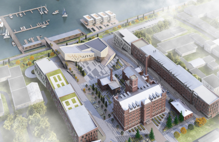 Концепция работы с пространством заключается в перестройке бывшей промышленной зоны под полноценную общественную зону с помощью освобождения пространства от промышленных зданий, с соблюдением охранного статуса некоторых зданий, с целью создания открытого пространства с увеличенным количеством путей подхода, собственной парковочной и рекреационной зоной.