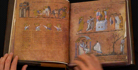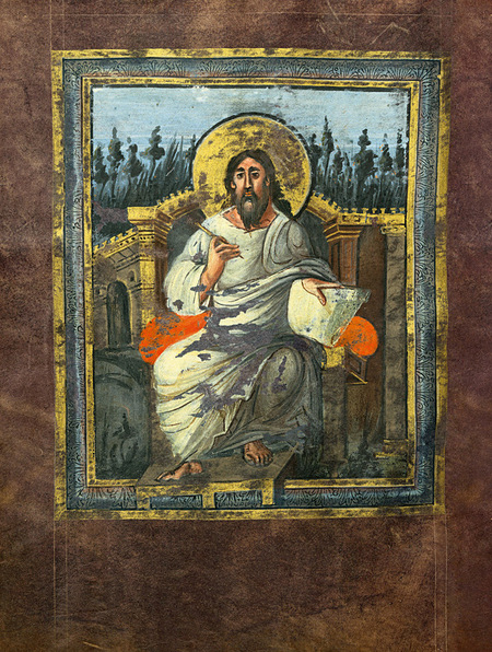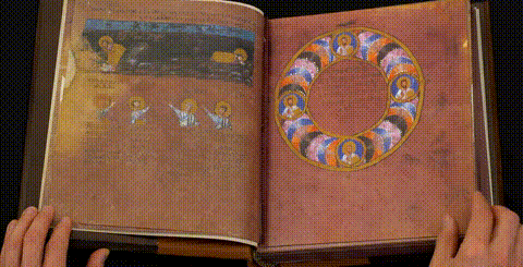 Всё это великолепие — пурпурные страницы, сияющие золотые и серебряные буквы, богатые циклы миниатюр — берет свое начало в Византии.