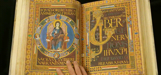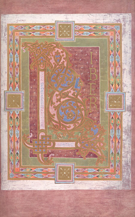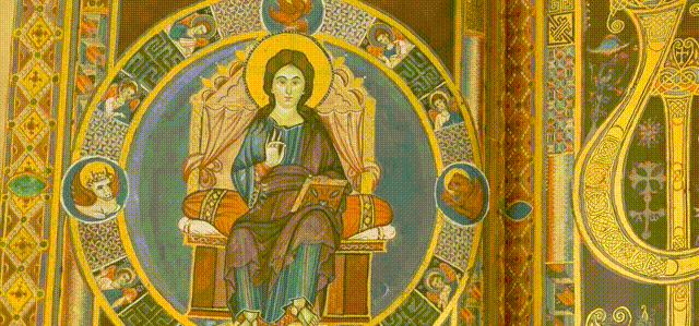 Золотой кодекс из Эхтернаха, 11 в. Содержит более 60 иллюминированных страниц, включая полностраничные миниатюры и портреты евангелистов.