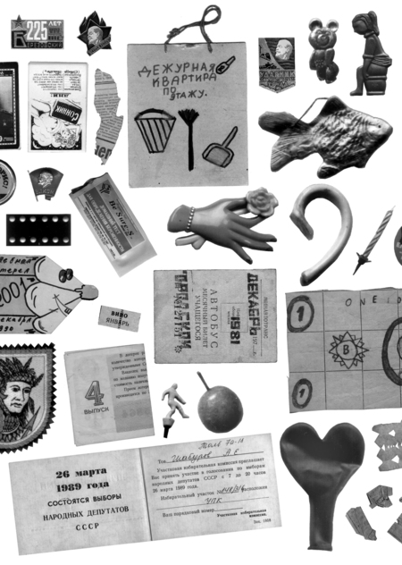 Приведённый здесь перечень — скорее не предметов, а бумажек, вырезок и мелких нефункциональных вещей. Раритетов, сопровождавших жизнь среднестатистического человека времён позднего СССР и России 1990-х. От рождения до смерти.