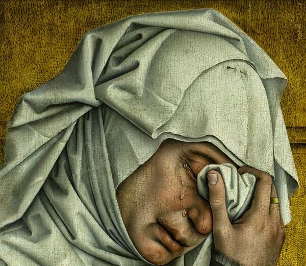 В противоположность этому Рогир ван дер Вейден преобразует ткань в поэзию жеста и эмоционального выражения. У него ткань уже не статичный предмет, а мистический элемент, наделённый экспрессией и способный передать внутреннее напряжение и духовную ауру человека. Его линия выходит на первый план, формируя драматические, почти скульптурные складки, сдержанные и приглушённые цвета ставят акцент на душевном состоянии, а не на материальном богатстве. Ткань у ван дер Вейдена — это архитектура внутреннего мира, она указывает на нравственные и духовные качества модели, подчёркивая её достоинство, смирение и духовное богатство. Этот подход становится инструментом выразительности личности и её переживаний.