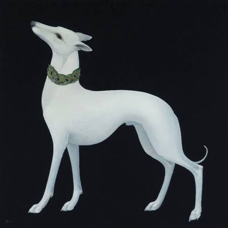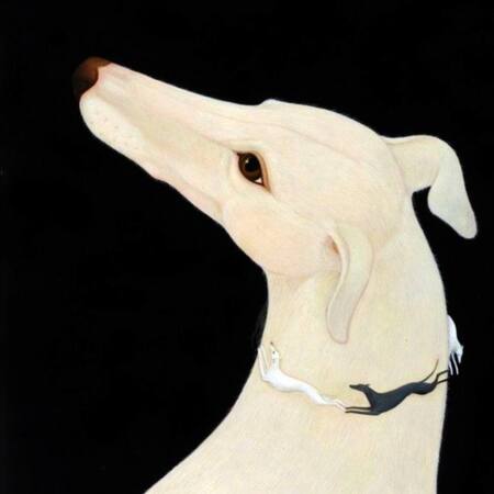 Нейросеть освоила стиль Whyn Lewis, передав геометрию уиппетов и контрасты. Генерации сохраняют энергию её работ