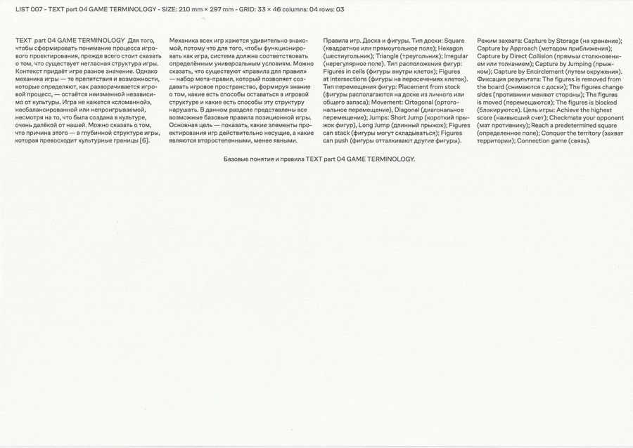 Издание состоит из трех разделов: Терминология (правила), Процесс (игровые модели), Контекст (сводная таблица данных об игре и правилах).