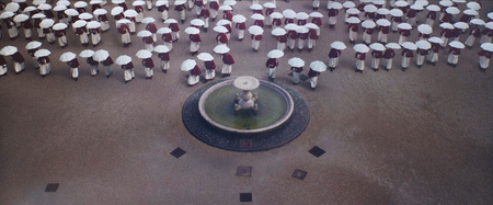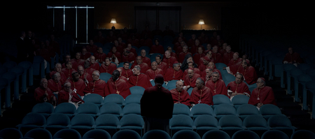 Много в фильме и ромбов с окружностями, что создают закольцованную симметричную композицию, символизируя долгий конклав. Каждый день похож на предыдущий, а кардиналы только больше и больше утопают в собственной гордыне и жажде власти.