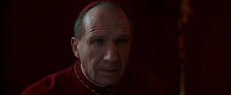 Фильм «Конклав» играет на контрастах преимущественно красного и темно-синего. Такое яркое отличие между холодным и теплым позволяет расставить необходимые акценты и рассказать историю без использования лишних диалогов.