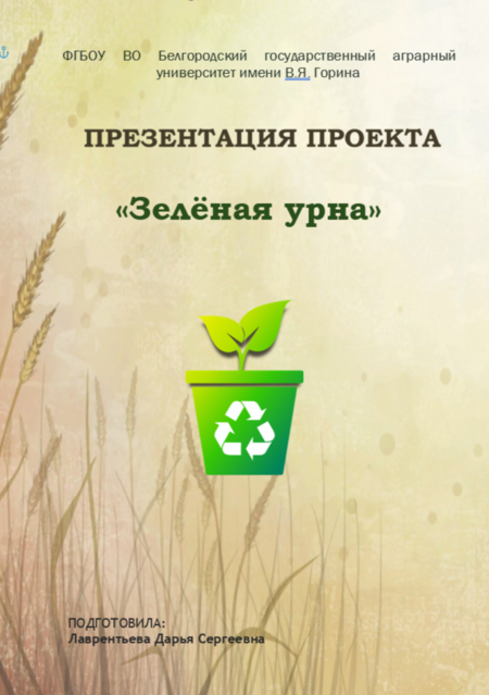 Образовательное учреждение: ФГБОУ ВО Белгородский ГАУ